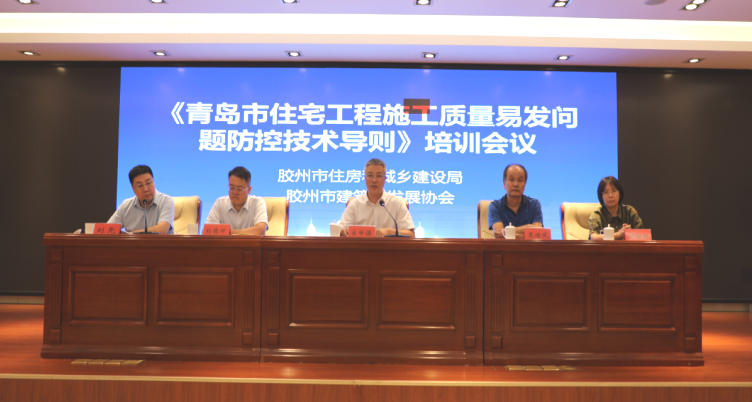 9月12日上午,膠州市住建局聯(lián)合膠州市建筑業(yè)發(fā)展協(xié)會(huì)在全國(guó)第48個(gè)“質(zhì)量月”活動(dòng)開展之際,組織召開住宅工程施工質(zhì)量易發(fā)問題培訓(xùn)會(huì)。膠州市住建局黨組成員、副局長(zhǎng)宋世謙,建筑工程質(zhì)量科科長(zhǎng)劉德升,中啟膠建集團(tuán)總工程師黑增武,副總工程師劉姍姍以及全市施工企業(yè)質(zhì)量技術(shù)負(fù)責(zé)人、項(xiàng)目經(jīng)理、項(xiàng)目質(zhì)量技術(shù)負(fù)責(zé)人,監(jiān)理企業(yè)質(zhì)量技術(shù)負(fù)責(zé)人等180余人參加培訓(xùn)。會(huì)議由膠州市建筑業(yè)發(fā)展協(xié)會(huì)秘書長(zhǎng)劉堯主持。
